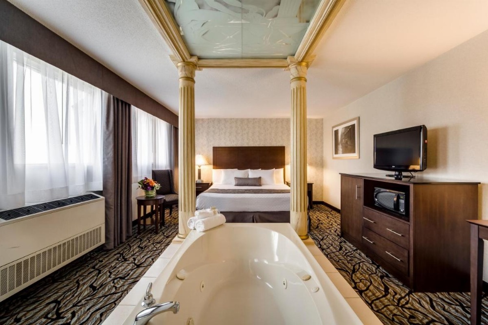 This suite's standout features are the hot tub and fireplace. The air-conditioned suite has 1 bedroom and 1 bathroom with a bath and a shower. The suite offers a tea and coffee maker, a wardrobe, a safe deposit box, tumble dryer and a flat-screen TV. The unit has 1 bed.